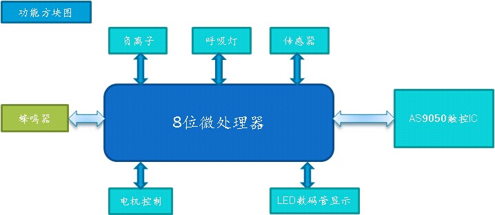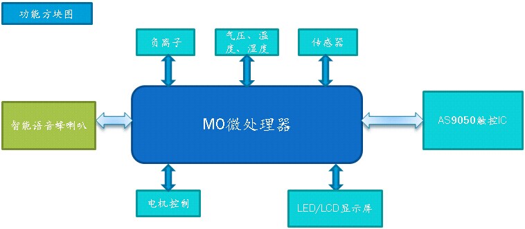 Air PurifierAir PurifierIntroduction to Air Purifier Air purifier is a product that can adsorb, decompose or transform various air pollutants and effectively improve the cleanliness of indoor air. They are used in the home, medical and industrial fields, with single-unit home air purifiers being the mainstream product in the home field. The most important function is to remove particles in the air, including allergens, indoor PM2.5, weather forecast, etc.. Principle of Air Purifier Air purifier is mainly composed of motor, fan, air filter and other systems, its working principle is: the motor and fan inside the machine to make indoor air circulation flow, polluted air through the air filter inside the machine will be a variety of pollutants to remove or adsorption, some models of air purifiers will also be in the outlet of the installation of anion generator (when working in the anion generator in the high voltage to generate DC negative high voltage), the air will be The air is continuously ionized to produce a large number of negative ions, which are sent out by a microfan to form negative ion airflow, achieving the purpose of cleaning and purifying the air. At present, A1Semi can provide customers with three types of air purifier machine program program 1: 8-bit 8051 MCU + touch IC Basic schematic: Program 2: M0 Microprocessor MO Processor Parameters Solution 3: Tactile MCU AS9049 Parameters |